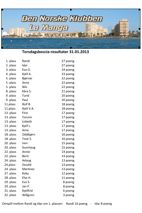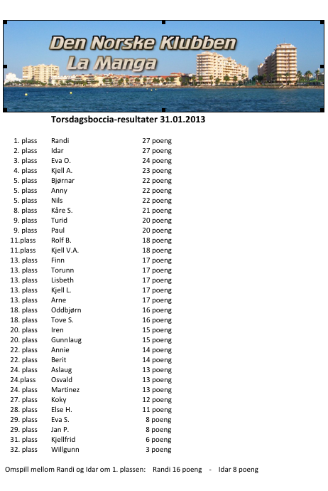 Boccia resultater 31.01.13