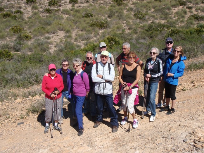 På grunn av at turdagen falt sammen med Generalforsamlingen i DNKLM ble det bestemt å gå en rask tur (?) fra Cala Reona og å sløyfe felles lunch. De raskeste gikk den vanlige turen rundt klippene, mens de litt roligere gikk motsatt vei inntil vi møttes. Den samlede gruppen er foreviget der vi møttes.