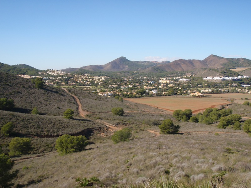 De vedlagte bildene illustrerer: 1) det flotte terrenget mot urbanisasjonen La Manga Klub, 2) De sprekeste ved turens høyeste punkt, og 3) Samlet tropp (-2) ved vannpostene etter endt tur.