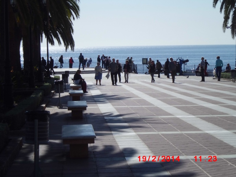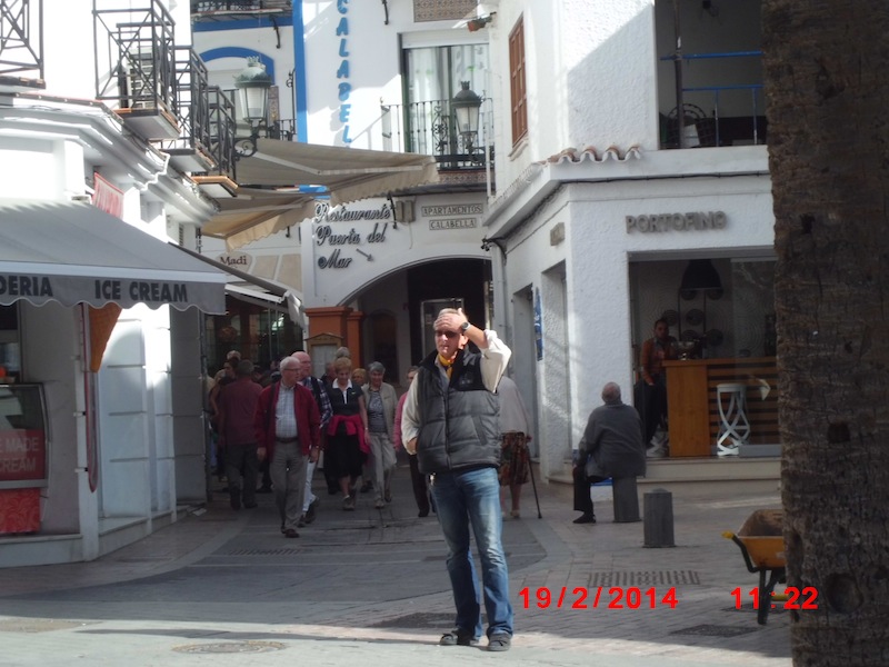 Vel framme i Nerja og hotellet Nerja Club i 5-tiden ble vi innsjekket og fant rommene uten noe om og men. Profesjonelt resepsjonistarbeid. Hotellet hadde tilfredsstillende standard – rent og pent med utendøre svømmebasseng på terrassen, men heldigvis var det ingen som ramla i det. Dette lovet godt. De som ønsket det ble hentet av klubbens «hoffsjåfør» – den alltid smilende og stødige Antonio – kl. 6 og kjørt ned til sentrum for en times rusletur og muligheter for litt shopping for de som hadde et «opplagt» handleGEN. Tilbake til hotellet i 7-tiden.