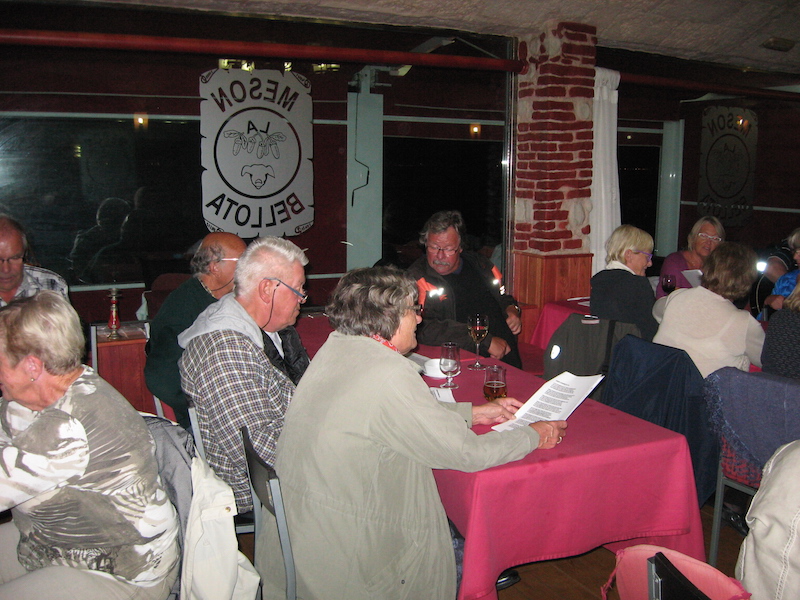Ja da hadde vi første vise og allsangaften på Bellota som ligger på»Blåstripa»,det er DNKLM sitt møtested nå.