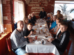På grunn av nevnte TV-sending ble det litt sen lunsj, men Meson la Bellota stilte opp med en fortreffelig komposisjon med valgfritt kjøtt eller fisk som hovedretter. Her fikk vi besøk av 3 til, slik at vi ble hele 16 personer til bords.