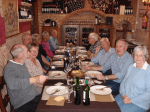 Et siste bilde er fra felleslunsjen på restauranten «Garnacha» i Los Belones. Her ble vi hele 12 stykker til bords da vår nestor, Jan Parow, stilte med frue og nyankommen sønn direkte fra Tyskland. Ved en inkurie som førte til en lapsus er fotografens samboer her totalt kommet i skyggen av vår turleder. Her nederst til høyre.