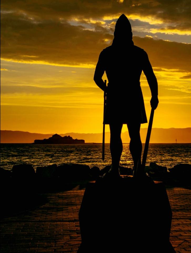 Dette var moro og kanskje solnedgang, men statuen er igarantert kke Olav Trygvasson. Den er av LEIF ERIKSON. Han antas å ha oppdaget Amerika 500 år før Columbus.