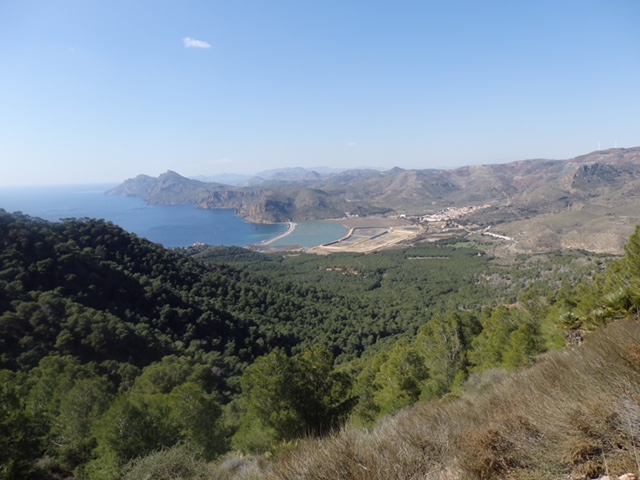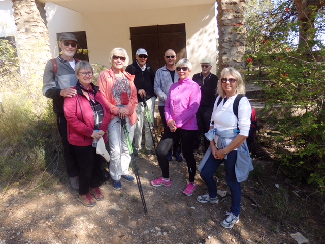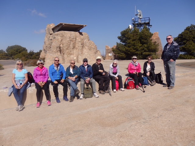 Endelig fredag igjen og som vanlig flott turvær med sol og passe varmt. Det var denne dagen 15 sprekinger som møtte opp på parkeringsplassen ved Grimangabygget for å gi seg ut på dagens tur med DNKLM’s gågruppe (fjellgeitene). Etter opptelling for deltakelse i fredagslunsjen og plassering i bilene dro vi innover La Manga – stripa, utover hovedveien straks forbi Los Belones og tok så av på den flotte nylagede veien forbi golfanleggene i La Manga Club og inn på parkeringsplassen ved avkjørsla til Llano del Beal. Dette er utgangspunktet for turen opp til kanonene på åsen mellom Los Belones og Portman.