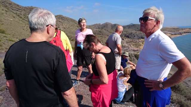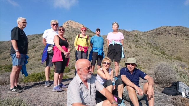 Fredag den 08.02.2019 var vi 13 som møtte opp på parkeringsplassen ved Grimangabygget for å gå den den kanskje mest krevende av turene på vårt repertoar, nemlig rundt «Cabeza Fuente» fra vannpostene ovenfor Los Belones. Ved vannpostene ventet 2 ivrige turgåere bosatt i Cabo de Palos, på oss slik at vi ble hele 15 totalt.
