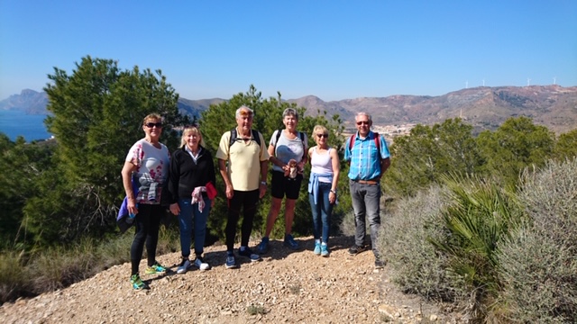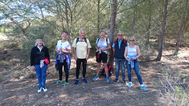 Vedlagt noen bilder som illustrasjon for det ovenstående. Ett fra første vanningsstopp på en åpen plass hvor de raskeste ventet på de andre etter avtale, ett fra utsiktspunktet hvor en ser deler av Portman, vindmøllene på åsen ovenfor og et glimt av Middelhavet, ett fra rasten på Gunnlaugs plass hvor vi var samlet for inntak av væske og frukt før vi gikk i samlet tropp tilbake til bilene.