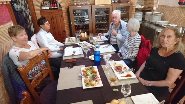 Det siste bildet er fra fredagslunsjen. Denne gangen fra restauranten «Garnacha» i Los Belones. Dette var første gangen denne vinteren at vi ikke benyttet spisesteder i nærområdet. Grunnen er at her ikke var noen å ta hensyn til som ikke kunne være med å gå turen, men ville være med å spise. Det ble dessverre ikke så mange deltakere her, men vi 6 som stilte fikk en hyggelig mottakelse, god mat og effektiv servering av en profesjonell stab.