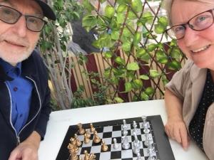 Vi ble bare min kone og jeg; men vi fullførte, og for første gang i vårt 39 år lange ekteskap fikk jeg muligheten til å lære kona mi å spille sjakk, og det gikk bra. Det var koselig, og flere kom innom for en prat, og hyggelig var det også.