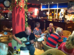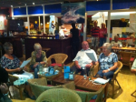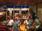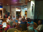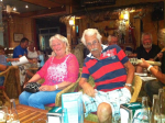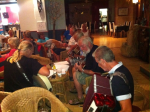 Da vi ankom Norte kl.20.00 var det møtt opp 25 stk. men det strømmet på med folk, og litt senere talte jeg 55 stk.som er ca. det vi pleier å være på disse kveldene. Det var også noen spanjoler, men de takket nei til å få et sanghefte for å synge med. Kanskje ikke så rart? De ble ikke talt med i antallet oppmøtte. Ett dansk par sang dog med av full hals på våres norske sanger. Etter en litt famlende start med Vandringsvisa tok det helt av med Hele Uken Alene. Kveldens nøtt var tydeligvis Fanaråken som handler om en frakte og passasjerbåt som gikk i rute mellom Bergen og Årdal innerst i Sognefjorden. Ikke alle kunne den sangen, men alle sang med. Kveldens høydepunkt var nok Terje Tysland sin Heile Livet For Deg. I pausene til musikantene fortalte Randi og Oddbjørn vitser/historier. Bl.a fra barnemunn. En av de som skrev i Bibelen, het Petter Dass. Han skrev blant annet «Da klokka sang,så fort jeg sprang»